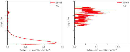 Aerosol extinction coefficient profile: (a) with discontinuity and (b) with many negative values.