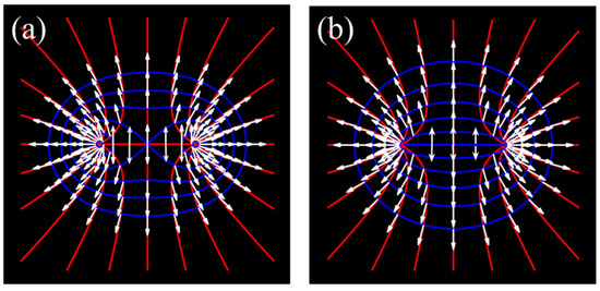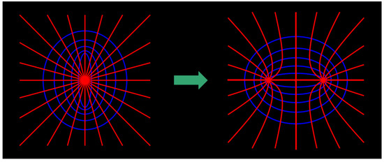 Thus, we need to determine the conformal mapping that can satisfy Equation (11). Inspired by the elegant approach of using complex analysis to describe the electrical field distribution produced by two nearby, infinitely long, thin wires with identical charges [26], we derived that the so-called circle-Cassinian conformal mapping