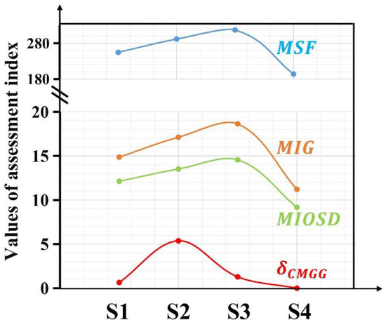 By comparing CMGG in Figure 8, Figure 10 and Figure 11, it was found that different influences on the quality of OCT images lead to changes in CMGG. CMGG is a multi-factor index. The speckle pattern of an OCT image contains a lot of information. The contrast of the OCT image depends on the amount of laser attenuation through the scatterer. As shown in Figure 4, when no attenuation of the OCT signal occurs (MAI = 0), there is only one gray level in the OCT image and it is spread out globally, which is not applicable to the DVC calculation at all. On the other hand, when the maximum attenuation of the OCT signal occurs (MAI reaches its maximum value), there are two extreme gray levels in the OCT image, but due to the concentrated distribution of gray levels, this situation is also not applicable to the DVC calculation. Therefore, GDD and GDB parameters are needed to evaluate the OCT image quality in cooperation. A high-quality OCT image should occupy all possible grayscales and be evenly distributed, expressed as a smaller GDB. In contrast, the distribution of these grayscales should be more dispersed, which is expressed as a larger GDD. When the image quality caused by different factors is studied, CMGG is stabilized at the same order of magnitude level through the linear coefficient a in Equation (6), which is convenient to reflect the influence of research factors intuitively. However, when more complex factors affect OCT image quality, CMGG needs to be unified, which is a limitation of the current research. In the future, we will further study and give a more general modulation method for CMGG to evaluate the OCT image quality caused by complex influencing factors.