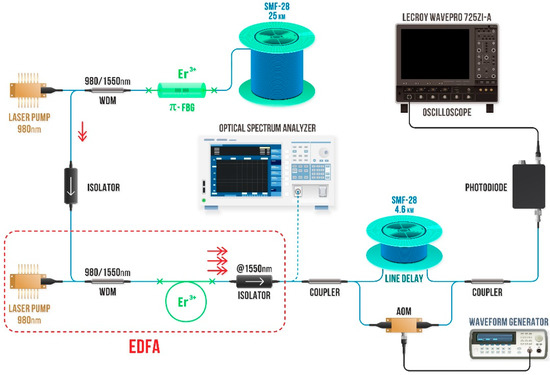 6. Bulushev, A.G.; Dianov, E.M.; Kuznetsov, A.V.; Okhotnikov, O.G. Reduction in the Line Width of an Injection Laser by Resonant Rayleigh Scattering in a Fiber Ring Interferometer. Sov. J. Quantum Electron. 1989, 19, 479–481. [Google Scholar] [CrossRef]