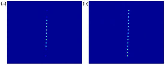 2D profiles of the experimentally generated 1 × 9 (a) and 1 × 15 (b) beam spot array.