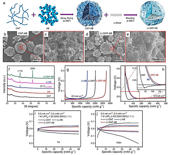- Sun, Z.; Jin, S.; Jin, H.; Du, Z.; Zhu, Y.; Cao, A.; Ji, H.; Wan, L.J. Robust expandable carbon nanotube scaffold for ultrahigh-capacity lithium-metal anodes. Adv. Mater. 2018, 30, 1800884. [Google Scholar] [CrossRef]