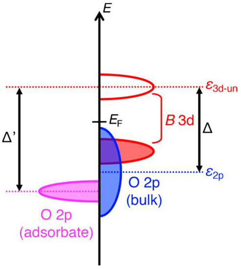 - Dickens, C.F.; Montoya, J.H.; Kulkarni, A.R.; Bajdich, M.; Norskov, J.K. An electronic structure descriptor for oxygen reactivity at metal and metal-oxide surfaces. Surf. Sci. 2019, 681, 122–129. [Google Scholar] [CrossRef]