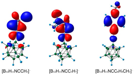 LUMO of nitrilium derivatives [B12H11NCR]−, R = CH3, n-C3H7, 4-CH3C6H4.