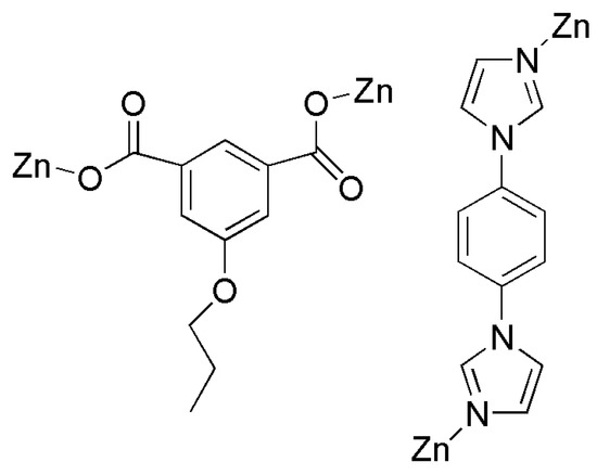 - Li, X.; Yu, Z.; Guan, T.; Li, X.; Ma, G.; Guo, X. Substituent Effects of Isophthalate Derivatives on the Construction of Zinc(II) Coordination Polymers Incorporating Flexible Bis(imidazolyl) Ligands. Cryst. Growth Des. 2015, 15, 278–290. [Google Scholar] [CrossRef]