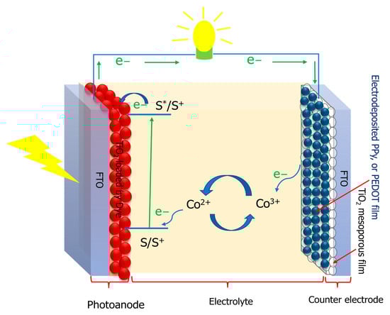 - Marchini, E.; Caramori, S.; Bignozzi, C.A.; Carli, S. On the Use of PEDOT as a Catalytic Counter Electrode Material in Dye-Sensitized Solar Cells. Appl. Sci. 2021, 11, 3795. [Google Scholar] [CrossRef]