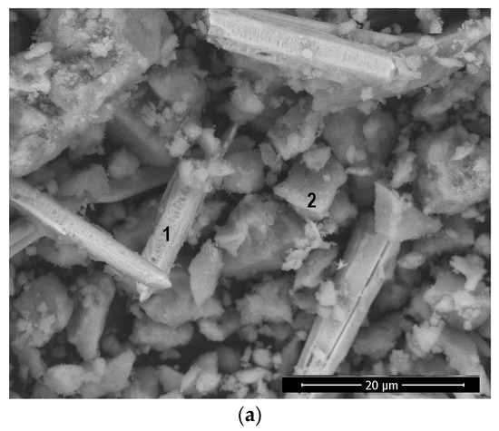 SEM/EDS images of the ZH powder: (a) SEM image of the powder; (b) EDS analysis of point 1; EDS analysis of point 2.