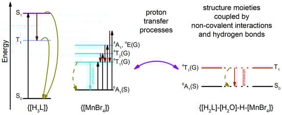 - Berezin, A.S.; Samsonenko, D.G.; Brel, V.K.; Artem’Ev, A.V. “Two-in-one” organic-inorganic hybrid MnII complexes exhibiting dual-emissive phosphorescence. Dalton Trans. 2018, 47, 7306–7315. [Google Scholar] [CrossRef]