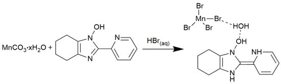 Berezin, A.S.; Selivanov, B.; Danilenko, A.; Sukhikh, A.; Komarovskikh, A. Manganese(II) Bromide Compound with Diprotonated 1-Hydroxy-2-(pyridin-2-yl)-4,5,6,7-tetrahydrobenzimidazole: Dual Emission and the Effect of Proton Transfers. Inorganics 2022, 10, 245. https://doi.org/10.3390/inorganics10120245