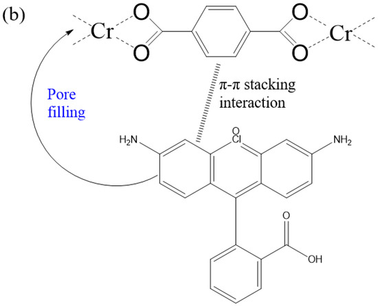 Possible mechanism of synergetic interplay for (a) MO and (b) RB adsorption on 160-MIL-101.
