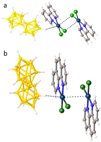- Avdeeva, V.V.; Vologzhanina, A.V.; Goeva, L.V.; Malinina, E.A.; Kuznetsov, N.T. Reactivity of boron cluster anions [B10H10]2−, [B10Cl10]2− and [B12H12]2− in cobalt(II)/cobalt(III) complexation with 1,10-phenanthroline. Inorg. Chim. Acta 2015, 428, 154–162. [Google Scholar] [CrossRef]