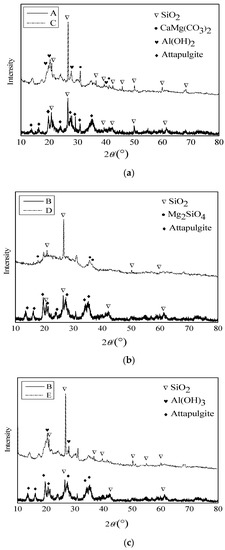 - Chen, T.; Wang, J.; Qing, C.; Peng, S.; Song, Y.; Guo, Y. Effect of heat treatment on structure, morphology and surface properties of palygorskite. J. Chin. Ceram. Soc. 2006, 34, 1406–1410. [Google Scholar]