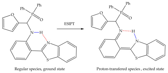 - Ji, S.; Ding, Z.; Zhao, J.; Zheng, D. Substituent control of dynamical process for excited state intramolecular proton transfer of benzothiazole derivatives. Chem. Phys. 2022, 560, 111568. [Google Scholar] [CrossRef]