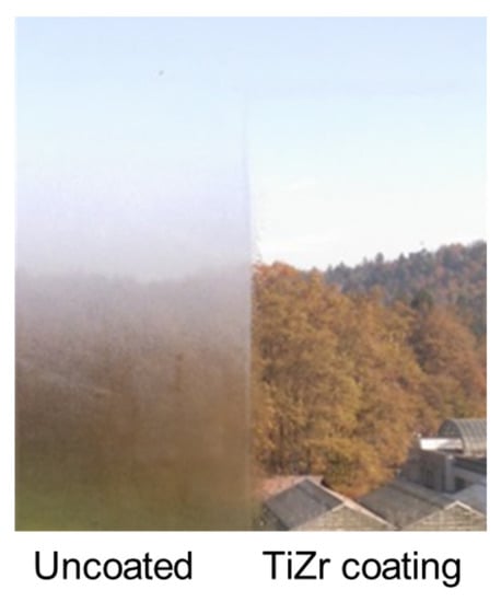The titanium dioxide sol can be also spray coated directly [23]. The corresponding sol was prepared via TTIP in ethanol. Zirconium tetrabutoxide was added to the solution. After stirring, a mixture of deionized water and perchloric acid was added. To spray the obtained sol onto glass, a binder solution of tetraethyl orthosilicate, colloidal silica, hydrochloric acid and isopropanol was prepared and mixed with the previously synthesized sol, propanol, and 2-propoxyethanol. An antase modification was formed.