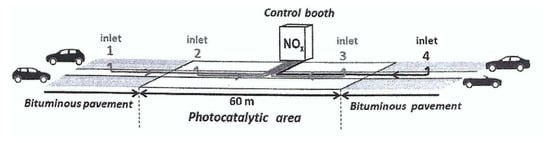 - Boonen, E.; Akylas, V.; Barmpas, F.; Boréave, A.; Bottalico, L.; Cazaunau, M.; Chen, H.; Daële, V.; de Marco, T.; Doussin, J.; et al. Construction of a photocatalytic de-polluting field site in the Leopold II tunnel in Brussels. J. Environ. Manag. 2015, 155, 136–144. [Google Scholar] [CrossRef] [PubMed]