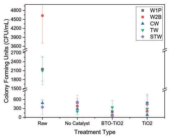 - Özkal, C.B.; Mantzavinos, D.; Meriç, S. Photocatalytic activity based-optimization of TTIP thin films for E. coli inactivation: Effect of Mn and Cu dopants. Catal. Today 2017, 280, 86–92. [Google Scholar] [CrossRef]