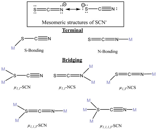 - Norbury, A.H. Coordination chemistry of the cyanate, thiocyanate, and selenocyanate ions. Adv. Inorg. Radiochem. 1975, 17, 231–386. [Google Scholar]