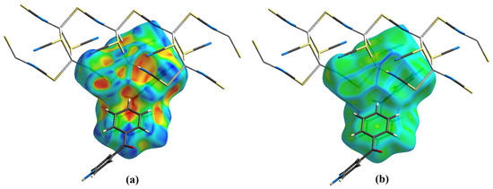 The other weak non-covalent interactions that occurred in complex 2 are shown in Figure 15. The hydrogenic H…H (21.9%), N…H (15.3%), S…H (14.9%) and C…H (14.8%) contacts were the most frequent interactions.