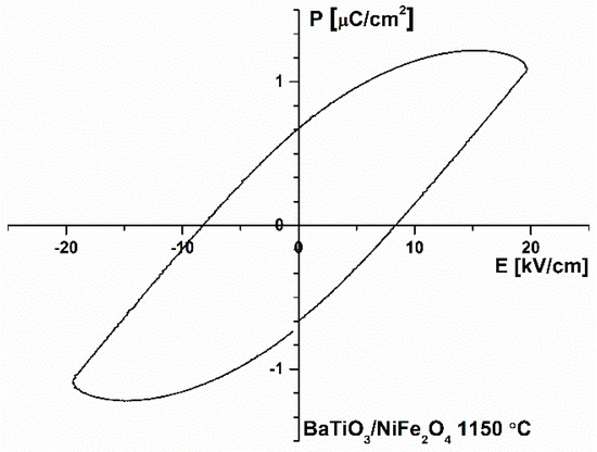 Hysteresis loop of BaTiO3/NiFe2O4 sintered at 1150 °C at 20 kV/cm field.