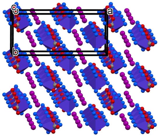 The complex cations and the iodide anions in the lattice were arranged in rows running parallel to the c crystallographic axis (Figure 2). The tetraammine(carbonato-κ2-O,O′)cobalt(III) complex cations were bound to each other by N-H···O hydrogen bonds and formed zigzag sheets (Table S4).