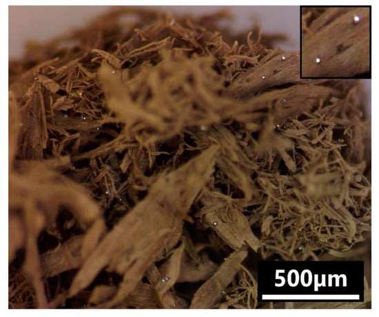 The tiny metallic cobalt particles were also visible on the stereomicroscopic image taken on the solid residue, recovered after the thermal measurement in helium. They appeared as a few micrometers small, shiny, glowing particles on the surface of brown CoO particles resembling wood fibers (Figure 7).
