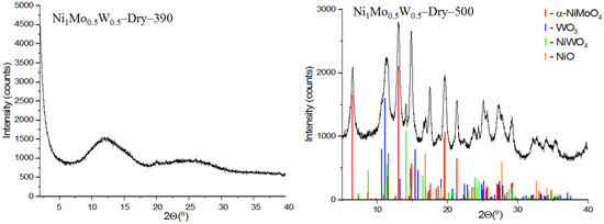 - Amaya, S.L.; Alonso-Núñez, G.; Cruz-Reyes, J.; Fuentes, S.; Echavarría, A. Influence of the Sulfidation Temperature in a NiMoW Catalyst Derived from Layered Structure (NH4)Ni2OH(H2O)(MoO4)2. Fuel 2015, 139, 575–583. [Google Scholar] [CrossRef]