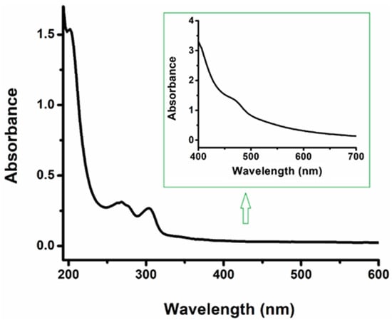UV–Vis absorption spectra of complex 3 measured in CH3CN (conc: 5 × 10−6 M; Inset conc: 5 × 10−3 M).