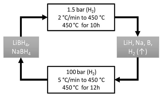 - Liu, Y.; Reed, D.; Paterakis, C.; Contreras, L.; Baricco, M.; Book, D. Study of the Decomposition of a 0.62LiBH4–0.38NaBH4 Mixture. Int. J. Hydrogen Energy 2017, 42, 22480–22488. [Google Scholar] [CrossRef]