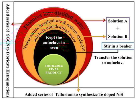 2.2. Synthesis of NiS and Te@NiS Nanoparticles