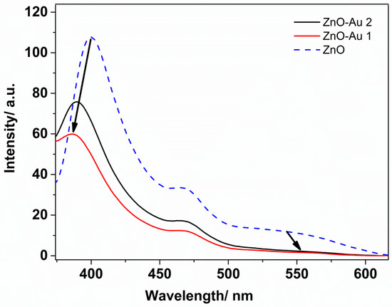 - Shan, G.; Zhong, M.; Wang, S.; Li, Y.; Liu, Y. The synthesis and optical properties of the heterostructured ZnO/Au nanocomposites. J. Colloid Interface Sci. 2008, 326, 392–395. [Google Scholar] [CrossRef] [PubMed]