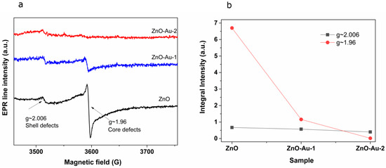 - Kaftelen, H.; Ocakoglu, K.; Thomann, R.; Tu, S.; Weber, S.; Erdem, E. EPR and photoluminescence spectroscopy studies on the defect structure of ZnO nanocrystals. Phys. Rev. B 2012, 86, 014113. [Google Scholar] [CrossRef]
