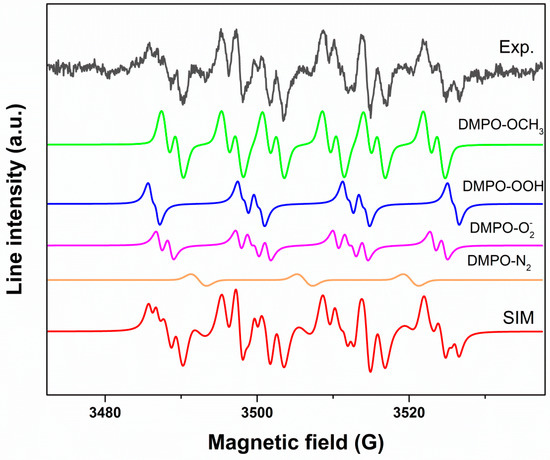 - Diaz-Uribe, C.E.; Daza, M.C.; Martínez, F.; Páez-Mozo, E.A.; Guedes, C.L.B.; Di Mauro, E. Visible light superoxide radical anion generation by tetra(4-carboxyphenyl) porphyrin /TiO2: EPR characterization. J. Photochem. Photobiol. A 2010, 215, 172. [Google Scholar] [CrossRef]