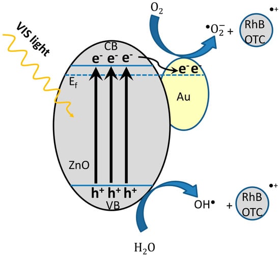 - Raji, R.; Gopchandran, K.G. Plasmonic photocatalytic activity of ZnO:Au nanostructures: Tailoring the plasmon absorption and interfacial charge transfer mechanism. J. Hazard. Mater. 2019, 368, 345–357. [Google Scholar] [CrossRef]