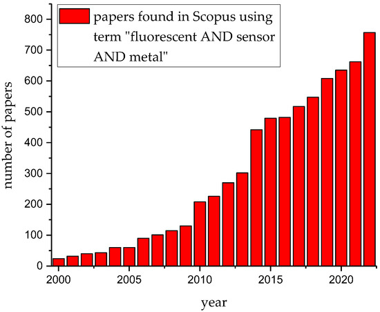 Quantity of papers devoted to fluorescent sensors of metals published per annum. Papers found in Scopus using the search term ‘fluorescent AND sensor AND metal’.
