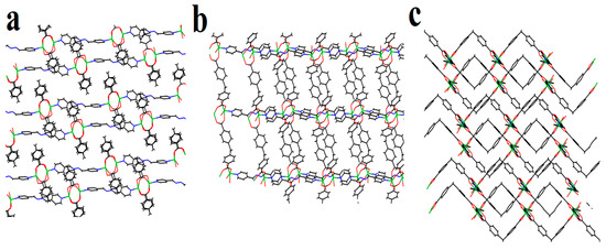 Metal–organic frameworks (MOFs) are subclasses of coordination polymers, which are often porous and created via the careful selection of metal ions or metal clusters alongside connecting linkers formed via coordination bonds [1,2,3,4,5,6]. In addition to coordination bonds, there are non-covalent interactions that occur, such as hydrogen bonding, π–π stacking between aromatic groups, and Van der Waals forces, which produce superstructures, flexibility, and dynamic porous compounds. Hydrogen bonds provide structural resistance that prevents the filling of space and thus allows for the growth of open frameworks [7,8]. In the synthesis of MOFs with metal ions and organic linkers, the flexibility around the metal ion often leads to the lack of proper control and the production of multiple structures; thus, oxygen-donating groups such as carboxylates are used to chelate the metal ions, whose interlocking is also used, resulting in oriented metal–oxygen–carbon clusters, which form geometric shapes called secondary structural units (SBU) [9]. In many reports, carboxylate ligands are usually chosen for the synthesis of MOFs because they act as both counter ions and bridging ligands with which to expand one-, two-, and three-dimensional structures [10]. For the design of favorable MOFs, the nature of the ligand used is very important [11,12,13]. For example, the use of aromatic polycarboxylate ligands leads to the production of MOFs with suitable coordination modes and high structural stability [14]. In the design and synthesis of MOFs with many dimensions, ligands with oxygen and nitrogen donors are often used [7,15,16,17]. The presence of different donor centers leads to the possibility of complexation due to linkage isomerism, and despite the difficulties of purification and identification experiments, this becomes a useful tool for the design of multi-dimensional MOFs. By employing various ligands or linkers, the preparation of special molecular frameworks with desirable properties can be realized. For example, through the use of N- and O-donor ligands (pyridine carboxylates), sensor compounds can be developed [18].