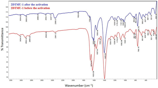 IR spectra of the 2DTMU-1 before and after the activation process.