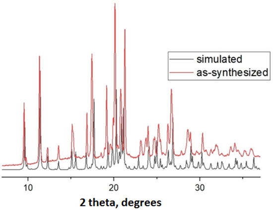 Complexes 1 and 2 were prepared using the solvothermal method which is widely applied in chemistry of metal-organic frameworks [53,54]. In all cases, it yielded single crystals suitable for X-ray diffractometry. As follows from powder X-ray diffractometry data (see Supplementary, Figures S1 and S2), both compounds are formed as single phases.