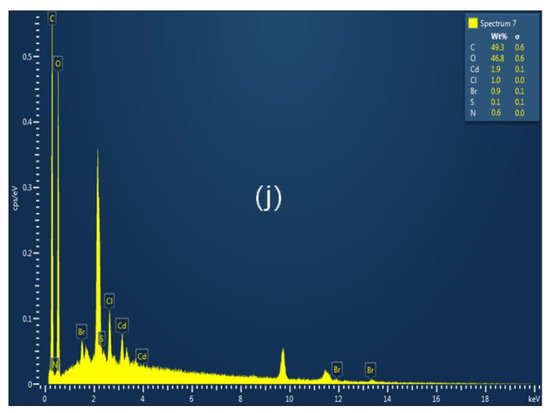 EDX spectra of (a) Blank cotton, (b) PTH-C, (c) Cr-PTH-C, (d) Mn-PTH-C, (e) Fe-PTH-C, (f) Co-PTH-C, (g) Ni-PTH-C, (h) Cu-PTH-C, (i) Zn-PTH-C and (j) Cd-PTH-C.