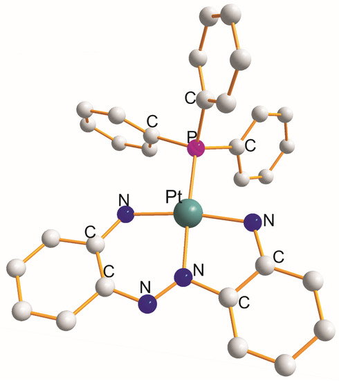 - Holloway, C.E.; Melnik, M. Structural aspects of platinum coordination compounds: PART III. Monomeric square-planar (PtA2XYand PtABXY) and trigonal bipyramidal PtII Coordination Compounds. Rev. Inorg. Chem. 2004, 24, 135–299. [Google Scholar] [CrossRef]