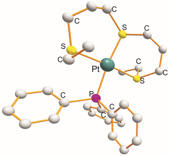 - Loeb, S.J.; Mansfield, J.R. Platinum(II) complexes of the tridentate thioether ligands RS(CH2)3S(CH2)3SR (R = Et, iPr, Ph). Structures of [PtCl(iPrS(CH2)3S(CH2) 3SiPr)][BF4], [Ptl(PhS(CH2)3S(CH 2)2SPh)][BF4], and [Pt(PPh3)(iPrS (CH2)3. Canad. J. Chem. 1996, 74, 1377–1390. [Google Scholar] [CrossRef]