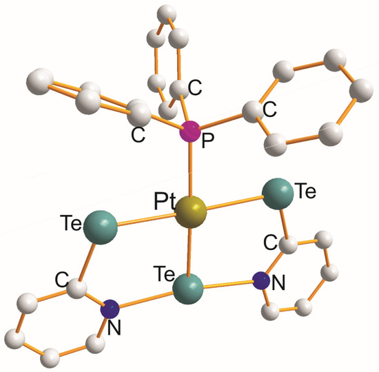 - Chauhan, R.S.; Kedarnath, G.; Wadawale, A.; Munoz-Castro, A.; Arratia-Perrez, R.; Jain, V.K.; Kaim, W. Tellurium(0) as a Ligand: Synthesis and Characterization of 2-Pyridyltellurolates of Platinum(II) and Structures of [Pt{2-Te-3-(R)C5H3N}2Te(PR′3)] (R = H or Me). Inorg. Chem. 2010, 49, 4179–4185. [Google Scholar] [CrossRef]
