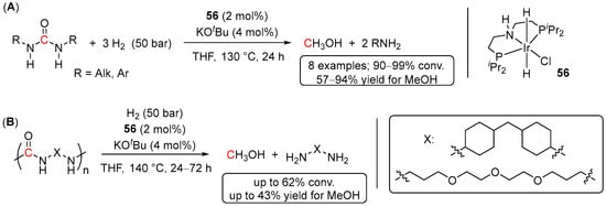 - Kumar, A.; Luk, J. Catalytic Hydrogenation of Urea Derivatives and Polyureas. Eur. J. Org. Chem. 2021, 2021, 4546–4550. [Google Scholar] [CrossRef]