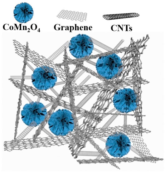Figure 1. Schematic diagram of CoMn2O4 nanoflower particles/graphene/carbon nanotube composite film.