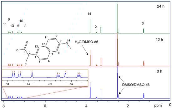 1H NMR (500 MHz, DMSO-d6) spectrum of Pt–Nap in t = zero h, 12 h, and 24 h.