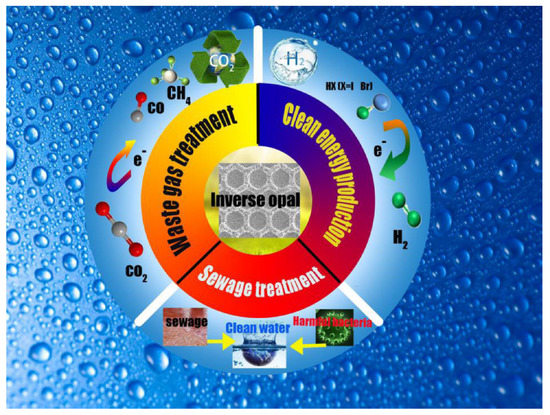 As a photocatalyst, inverse opal photonic crystal is widely used in sewage treatment, clean energy production, and waste gas treatment, as shown in Figure 11.
