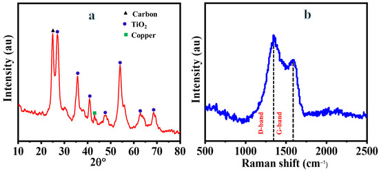 XRD (a) and Raman (b) analyses of composite NFs after sintering at 800 °C in Ar.