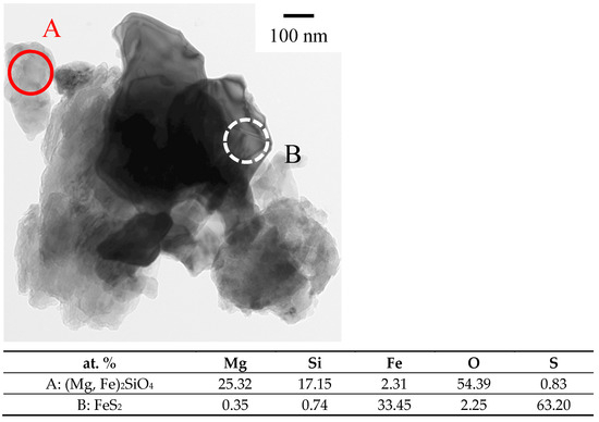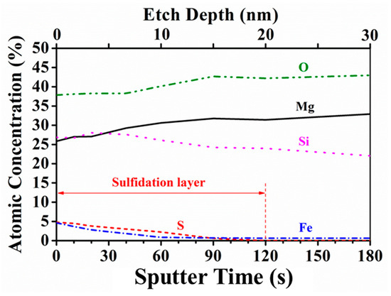 | Element (at.%) | Mg | Si | Fe | O | S |
