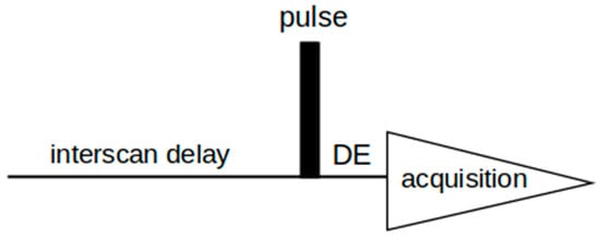 Scheme of a simple one-dimensional pulse-acquisition NMR experiment, composed of the interscan delay, a pulse, the delay between pulse and acquisition (vide infra) and the signal acquisition.