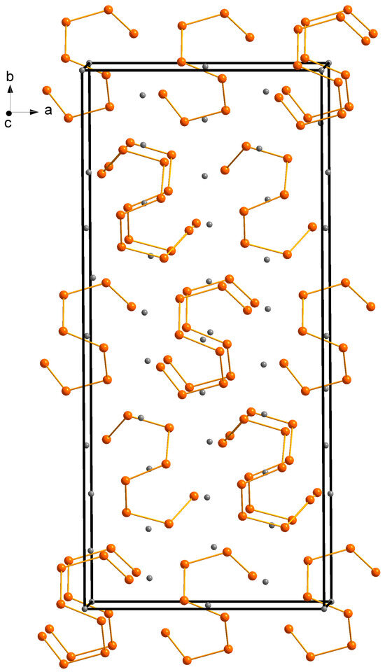 - Eisenmann, B.; Jordan, H.; Schäfer, H. Ba2Sb3, Eine Neue Zintlphase Mit Sb6-Ketten/On Ba2Sb3, a New Zintl Phase with Sb6 -Chains. Z. Naturforsch. B 1985, 40, 1603–1606. [Google Scholar] [CrossRef]
