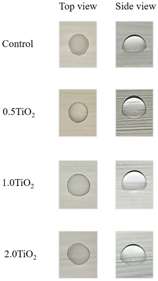 Observation of contact angle for self-cleaning modified acrylic paint tiles with different content of TiO2.
